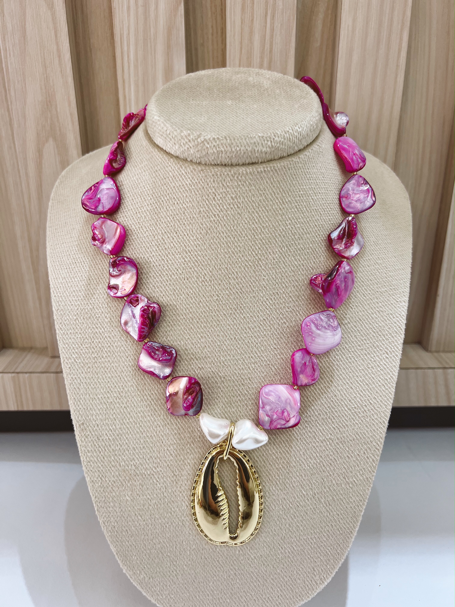 Collar perlas morada y caracol
