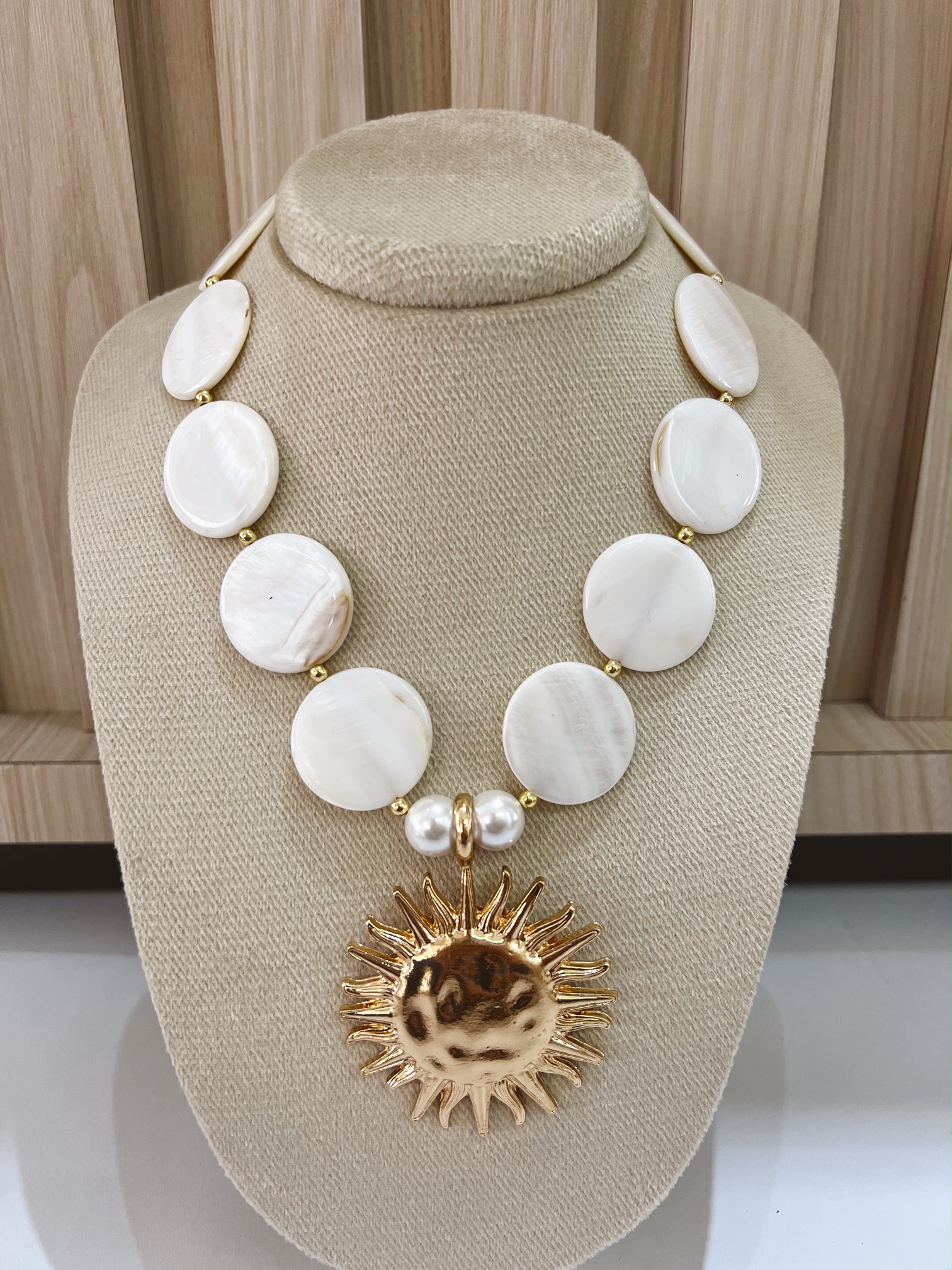 Collar perlas planas grandes y sol