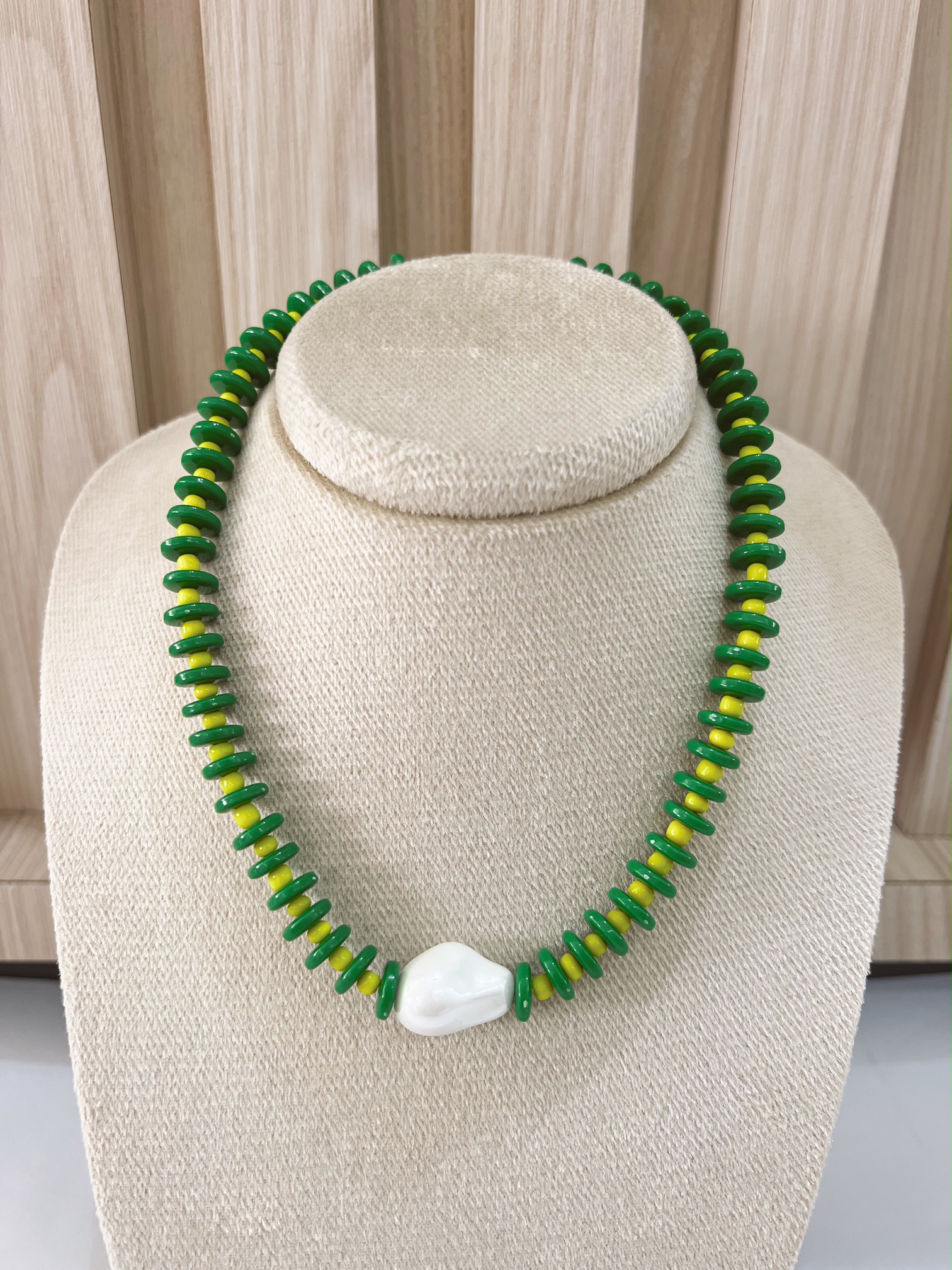 Collar resorte verde y perla