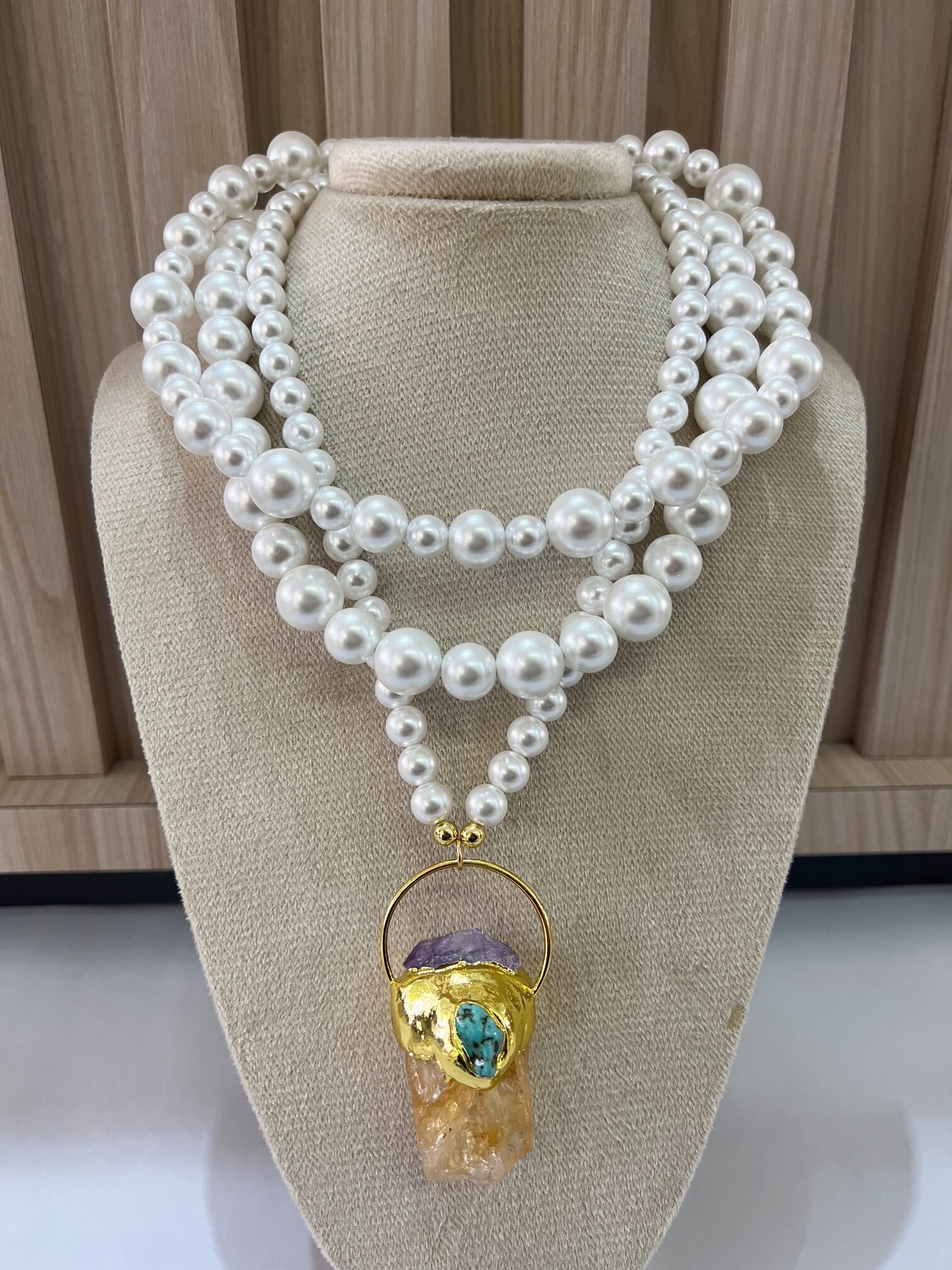 Multicollar perlas y dije piedra cantidad