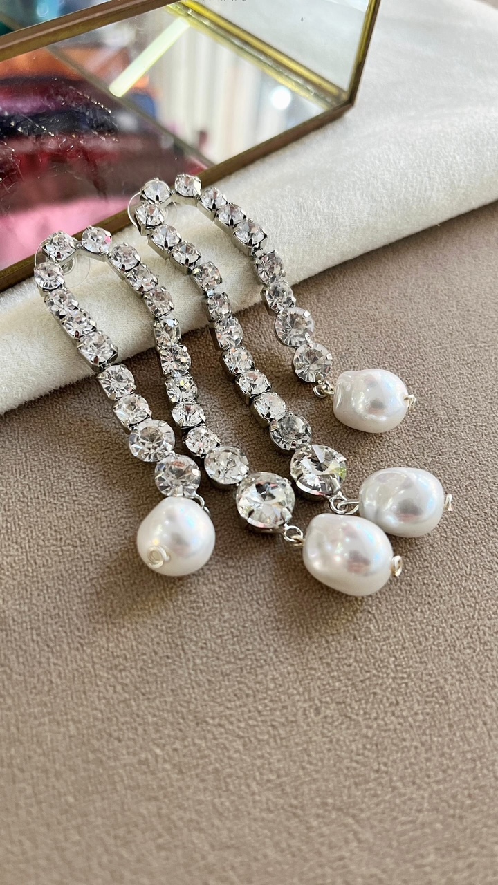 Zarcillo strass perla plateado